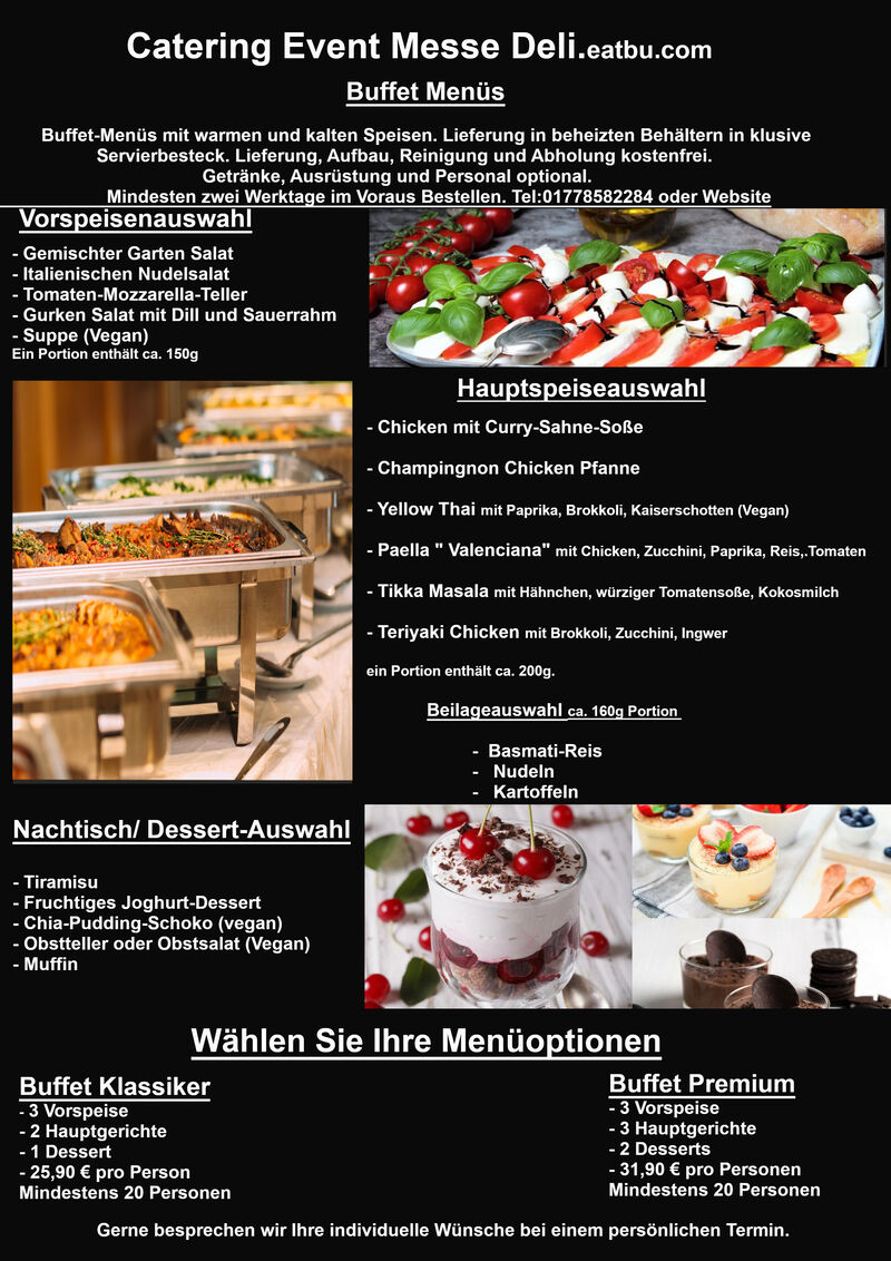 CALL +491778582284Wir bieten Catering für jeden Anlass. Messe Catering, Event Catering, Business Catering, Fingerfood, Buffet, Bowls, Wraps, Tacos. Du bestimmt, was geliefert wird. Aus unserer bunten Auswahl an Speisen kannst du zwischen Fingerfood oder warmen Buffet Deine Favoriten aus unsere Speiskarte wählen. Kontaktieren Sie uns telefonisch oder per E-Mail unter Tel: 01778582284 oder Email hafizamarufi@yahoo.com.